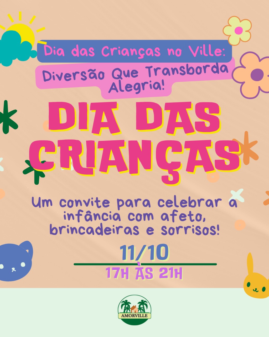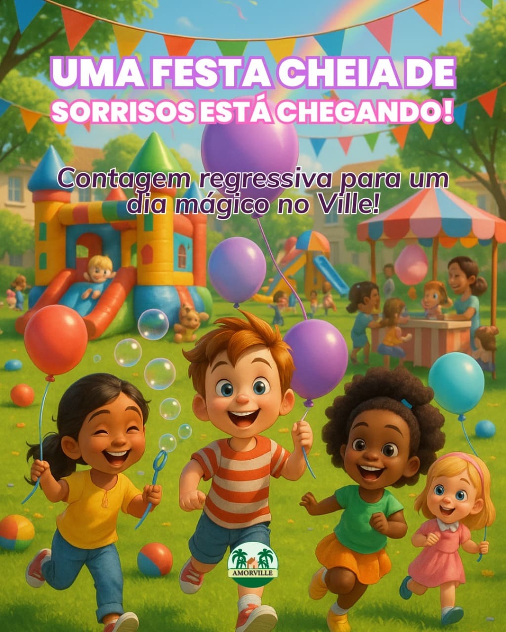 Chegou a hora de viver um dia cheio de cor, música e alegria! Preparamos uma programação especial para celebrar o Dia das Crianças com a leveza e a magia que nossos pequenos merecem. Brinquedos, atividades lúdicas, guloseimas e muito carinho esperam por você e sua família neste evento feito com amor para a comunidade do Ville. Venha brincar, celebrar e criar memórias inesquecíveis com a gente!